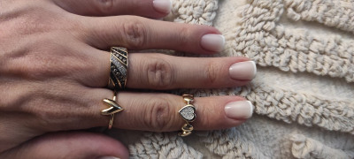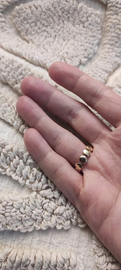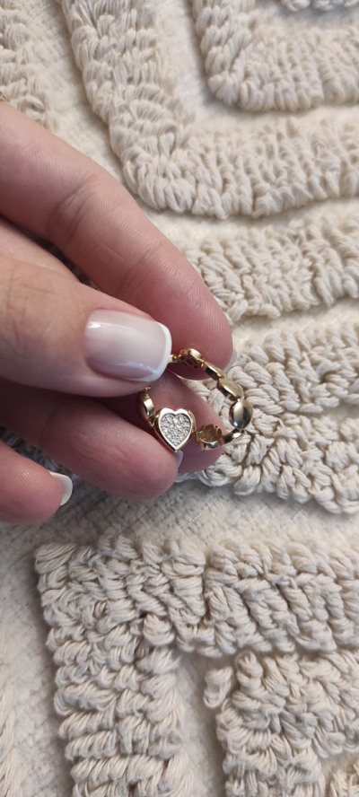Необычное кольцо) гибкое, я бы сказала мобильное. Можно переворачивать сердечко и носить двумя способами. У меня 16 размер. Но на немного отекшие пальцы летом на 15'5 тоже хорошо)кружочки соединены золотой проволокой. Очень милое. Буду носить с удовольствием ✨🔥😍
