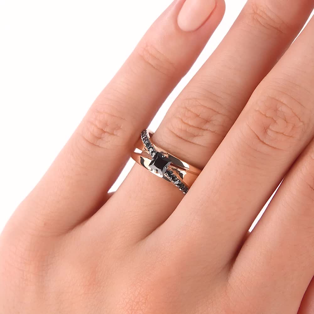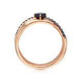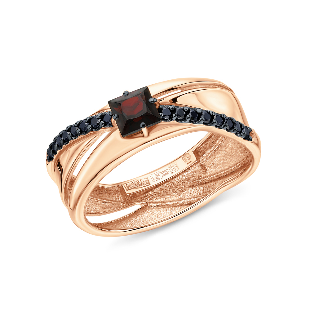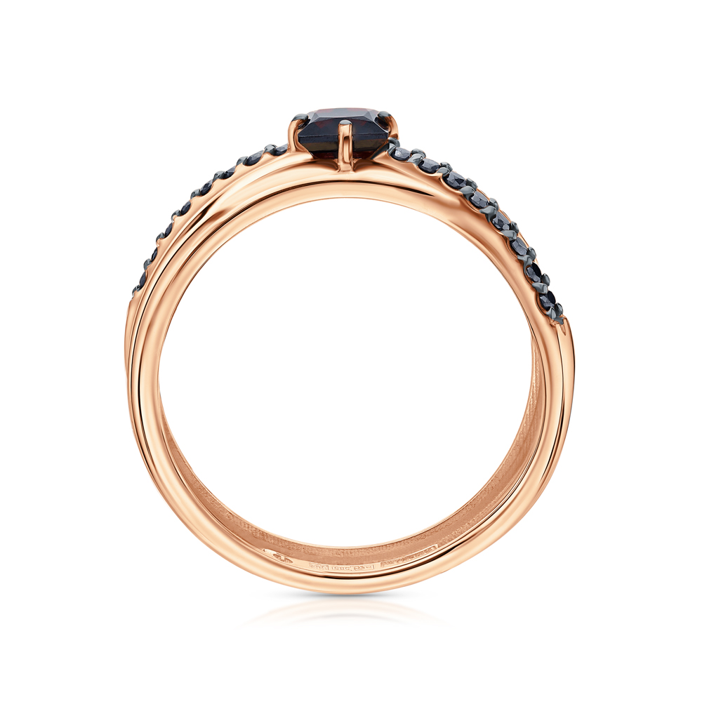 Золотое кольцо с бриллиантами чёрными природными и гранатами природными