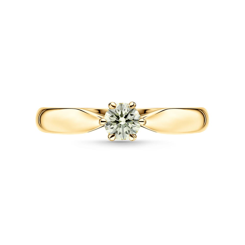 Кольцо с 1 бриллиантом желтым природным, 0.22 карат, огранка круг 57 граней, цвет 5, чистота 6, тип огранки А;