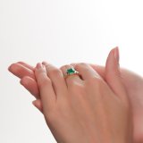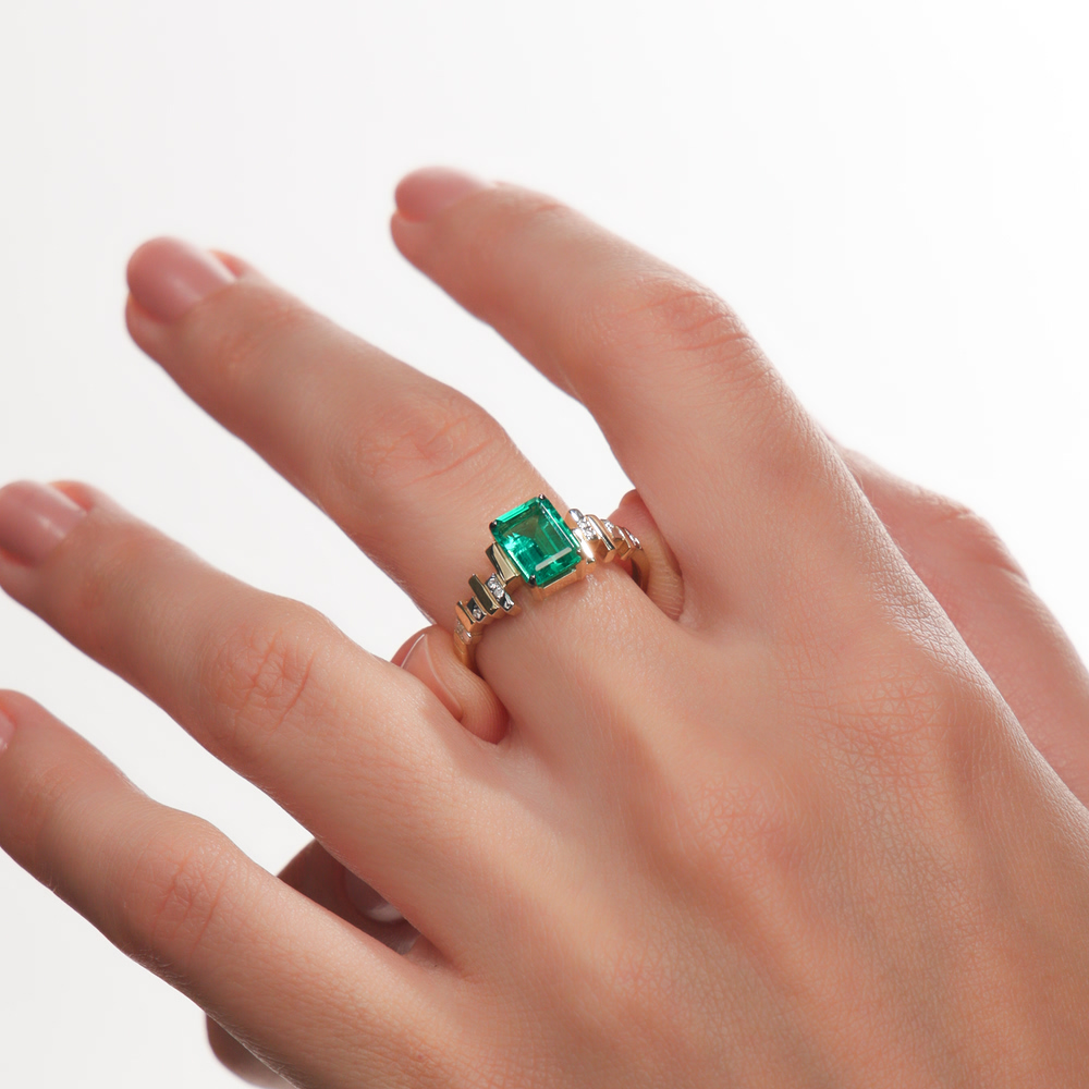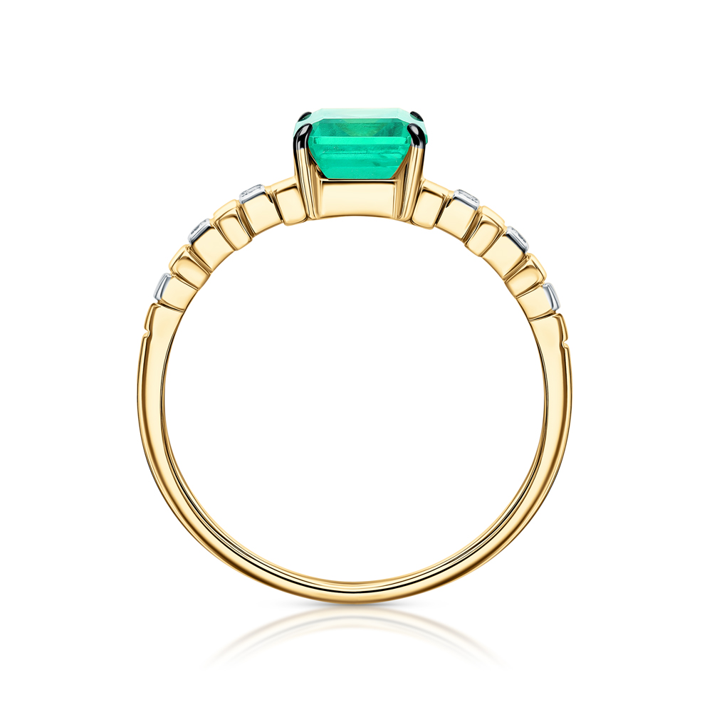 Золотое кольцо с бриллиантами выращенными и изумрудами выращенными
