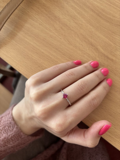 Аккуратное и тоненькое, камень отдает малиновым, яркое)
