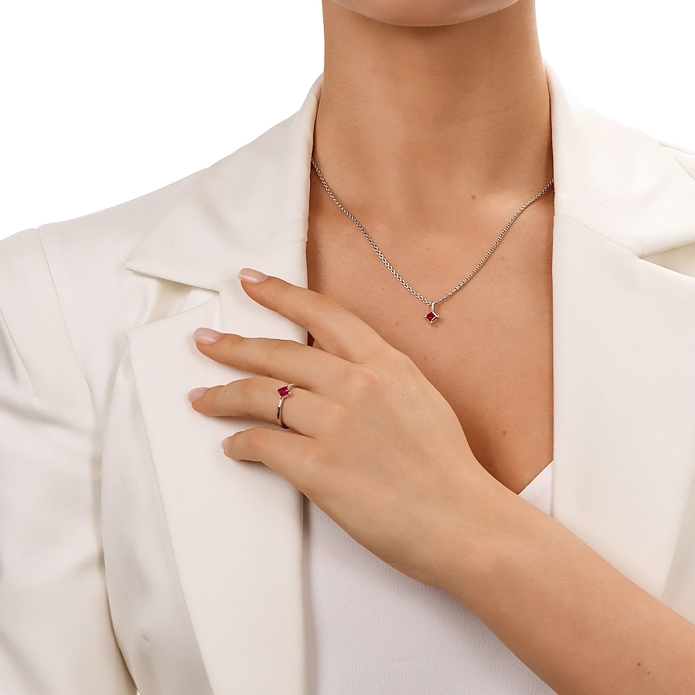 Кольцо, вставка: красным корундом синтетическим;