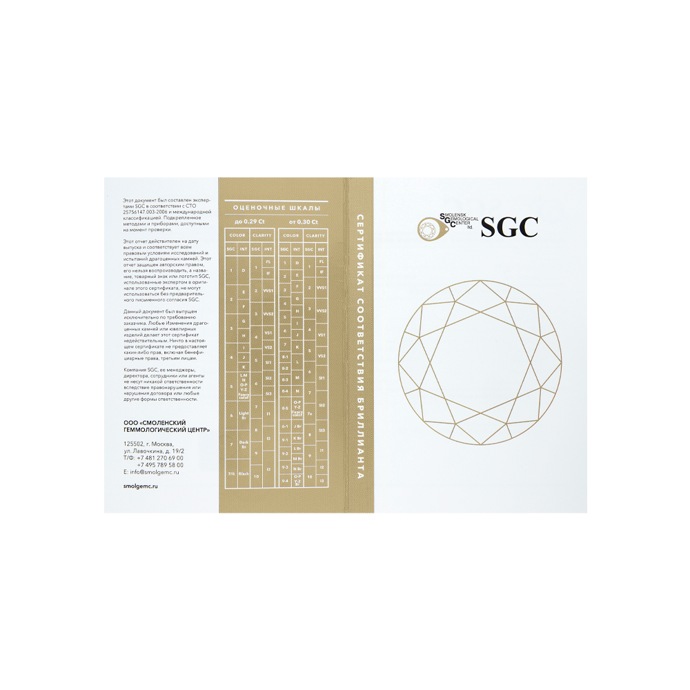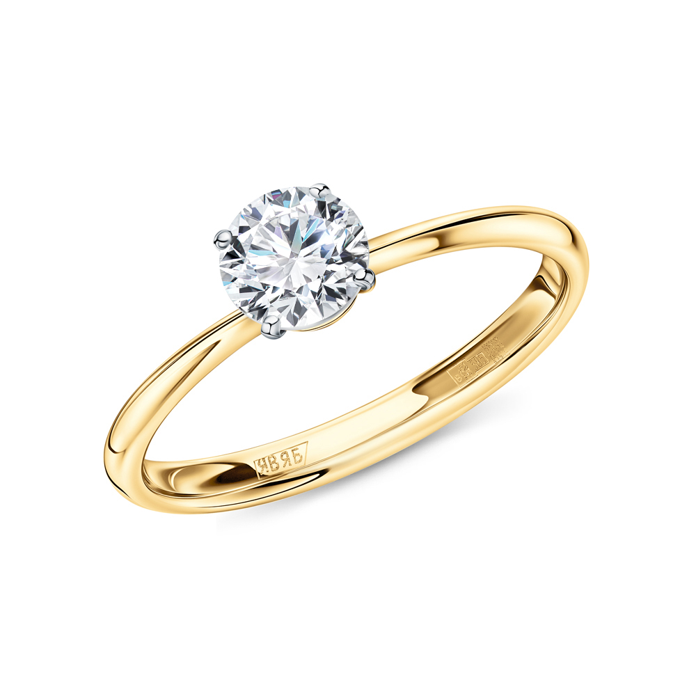 Кольцо с 1 бриллиантом природным, 0.51 карат, огранка круг 57 граней, цвет 2, чистота 6, тип огранки А;