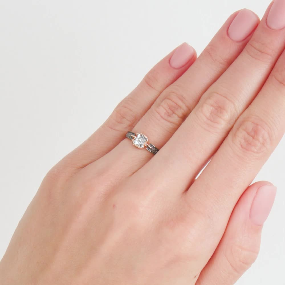 Золотое кольцо с бриллиантами и бриллиантами чёрными природными