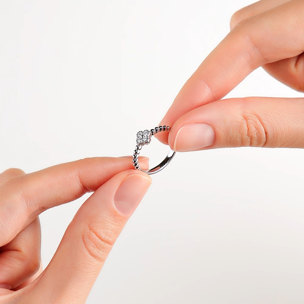 Кольцо с 4 бриллиантами выращенными, 0.1 карат, огранка круг 57 граней, цвет 3, чистота 5, тип огранки А;