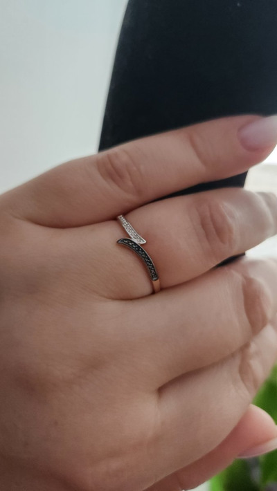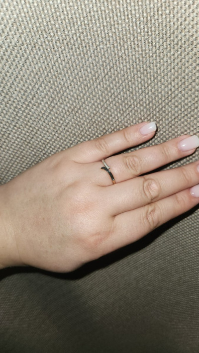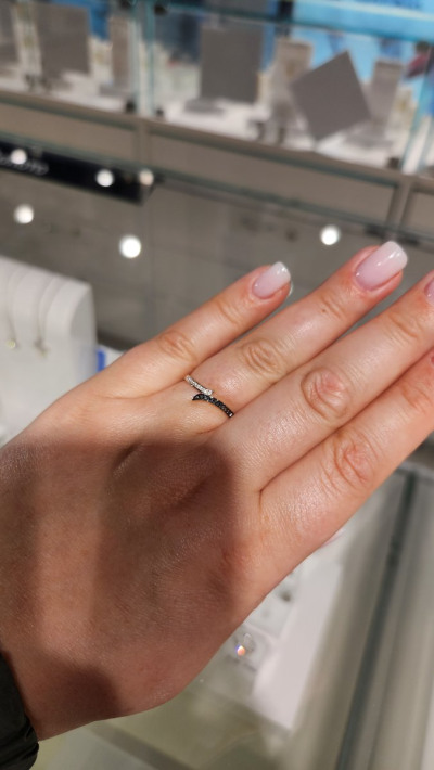 Интересное кольцо с двумя цветами бриллиантов. Хоть и тоненькое, но заметное. Камушки блестят, а я как ворона, что блестит и нравится беру)