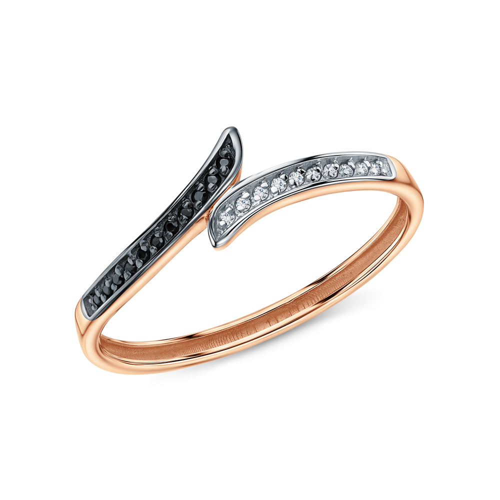 Золотое кольцо с бриллиантами и бриллиантами чёрными природными