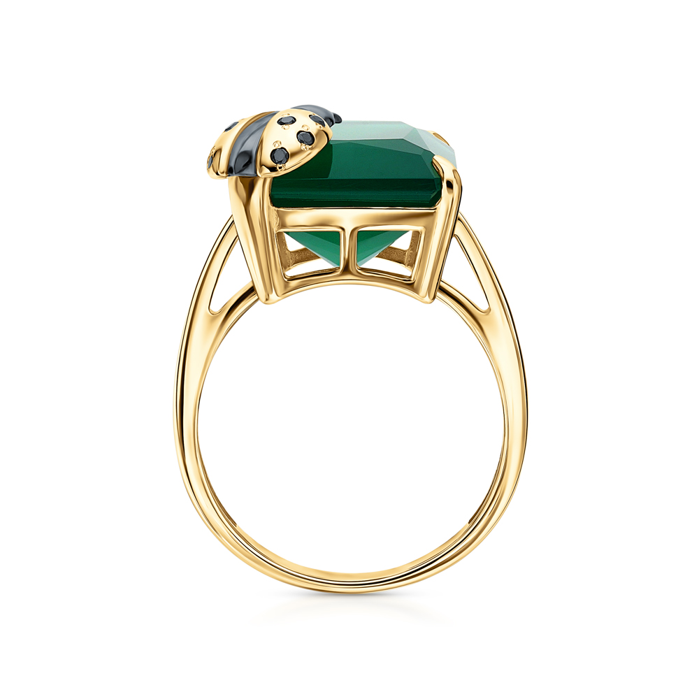 Золотое кольцо с бриллиантами чёрными природными и ониксом природным