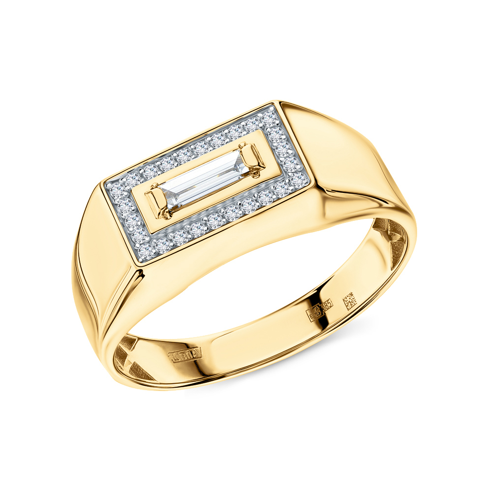 Кольцо с 1 бриллиантом природным, 0.15 карат, огранка багет 25 граней, цвет 2, чистота 2, тип огранки А;
