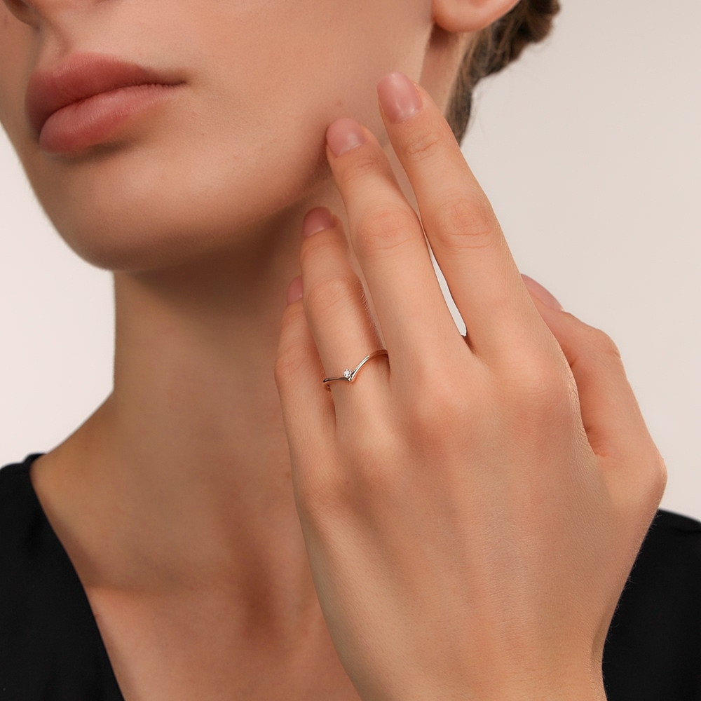 Кольцо с 1 бриллиантом природным, 0.02 карат, огранка круг 57 граней, цвет 3, чистота 6;
