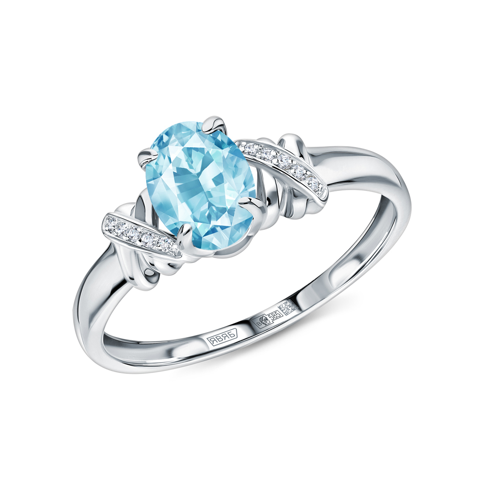 Золотое кольцо с бриллиантами природными и топазами природными