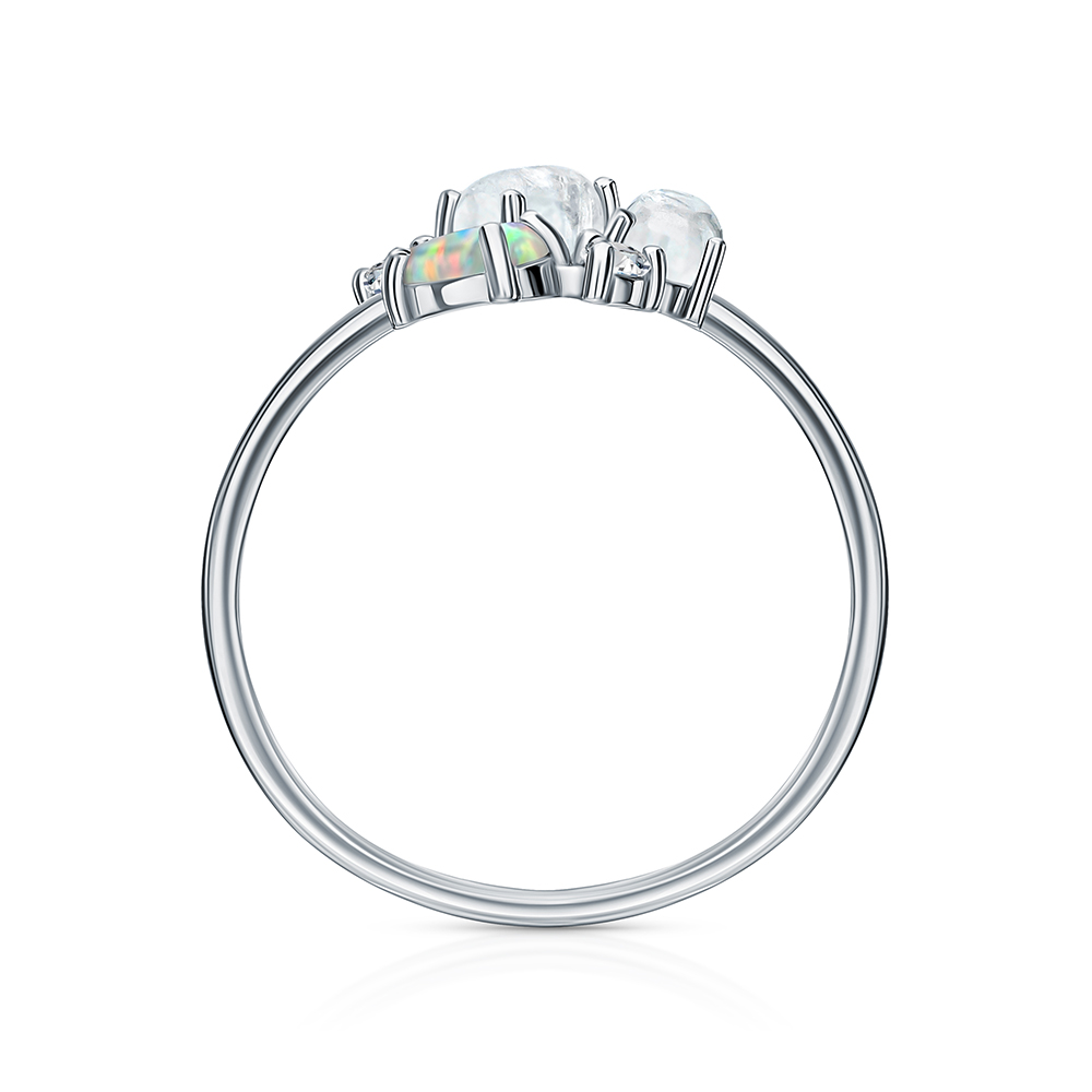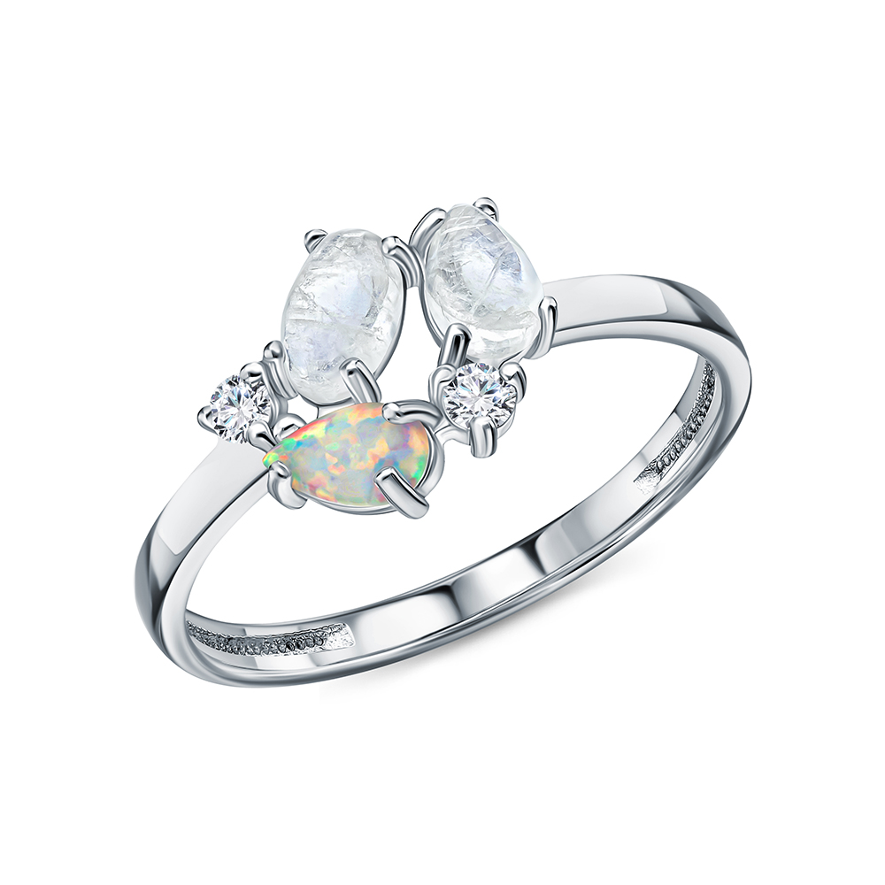 Серебряное кольцо с фианитами, опалами и лунным камнем