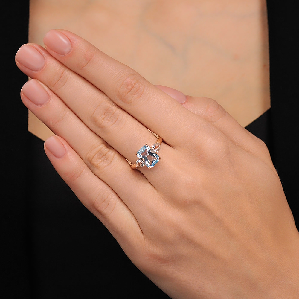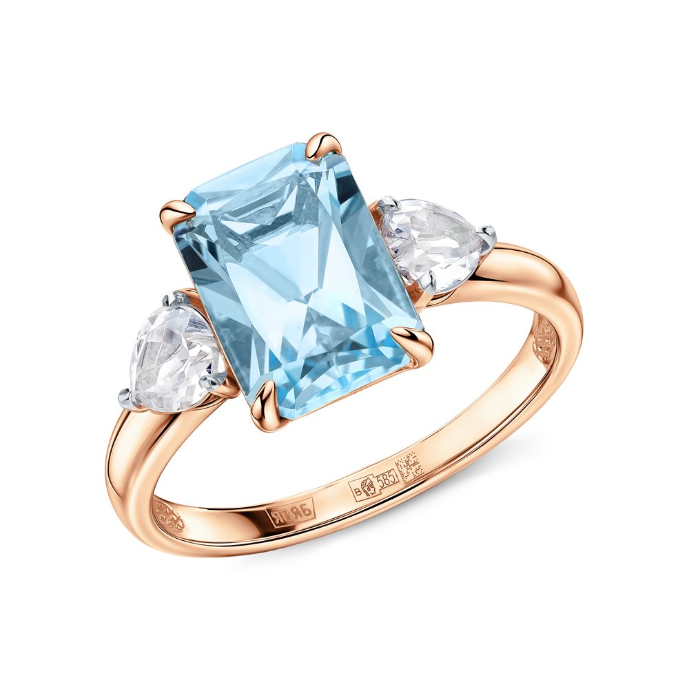 Золотое кольцо с топазами природными и горными хрусталями природными