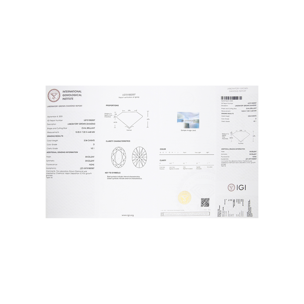 Кольцо с 1 бриллиантом выращенным, 2.01 карат, огранка овал 57 граней, цвет 4, чистота 5, тип огранки А;