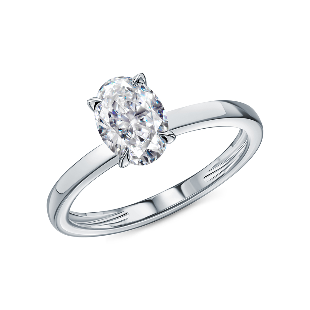 Кольцо с 1 бриллиантом выращенным, 1.04 карат, огранка овал 57 граней, цвет 4, чистота 5, тип огранки А;
