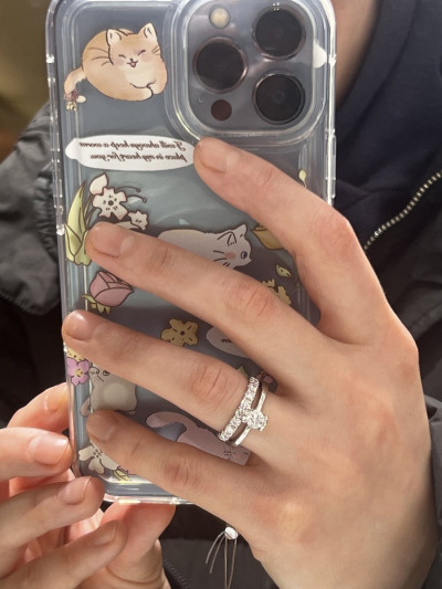 Выбирали обручальное кольцо, которое в паре с помолвочным смотрелось бы хорошо, выбор пал на этот вариант, выглядит прекрасно, очень ярко переливается