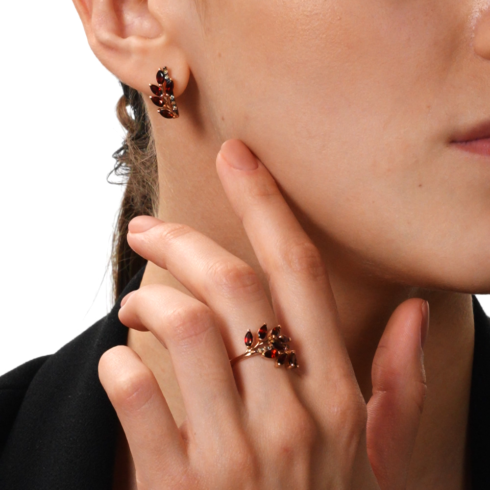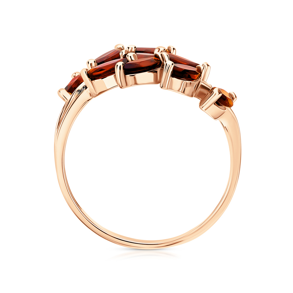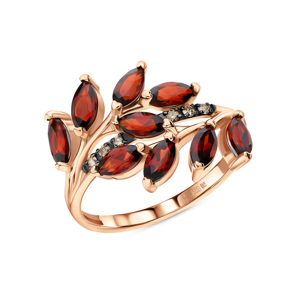 Золотое кольцо с бриллиантами коньячными природными и гранатами природными
