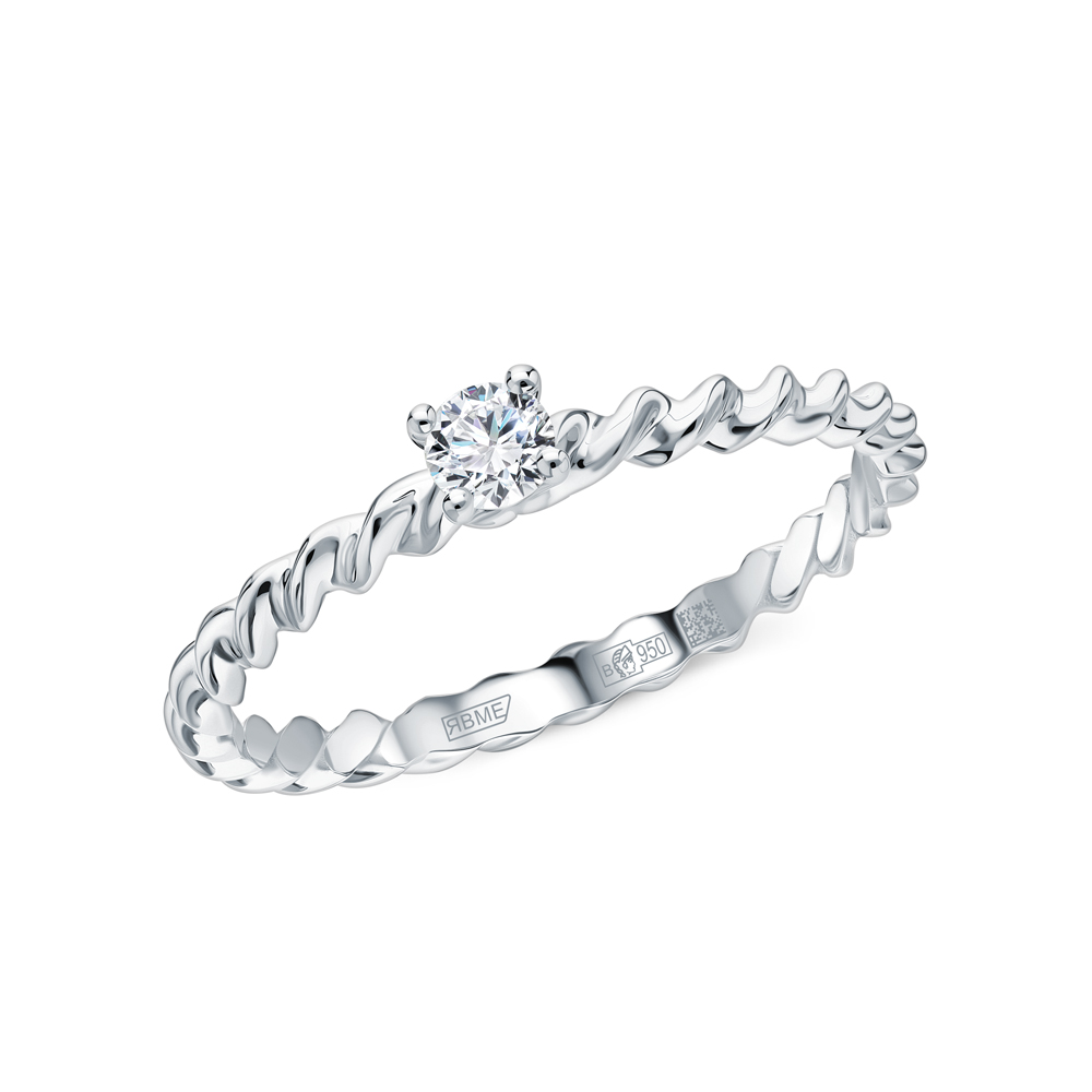 Кольцо с 1 бриллиантом природным, 0.1 карат, огранка круг 57 граней, цвет 3, чистота 6, тип огранки А;
