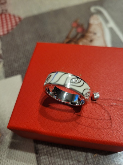 Очень элегантное кольцо с фианитами и покрытое эмалью,для молодой девушки,в подарок на Новый год.К колечку идут серьги.Вместе это смотрится красиво,безупречно,модно