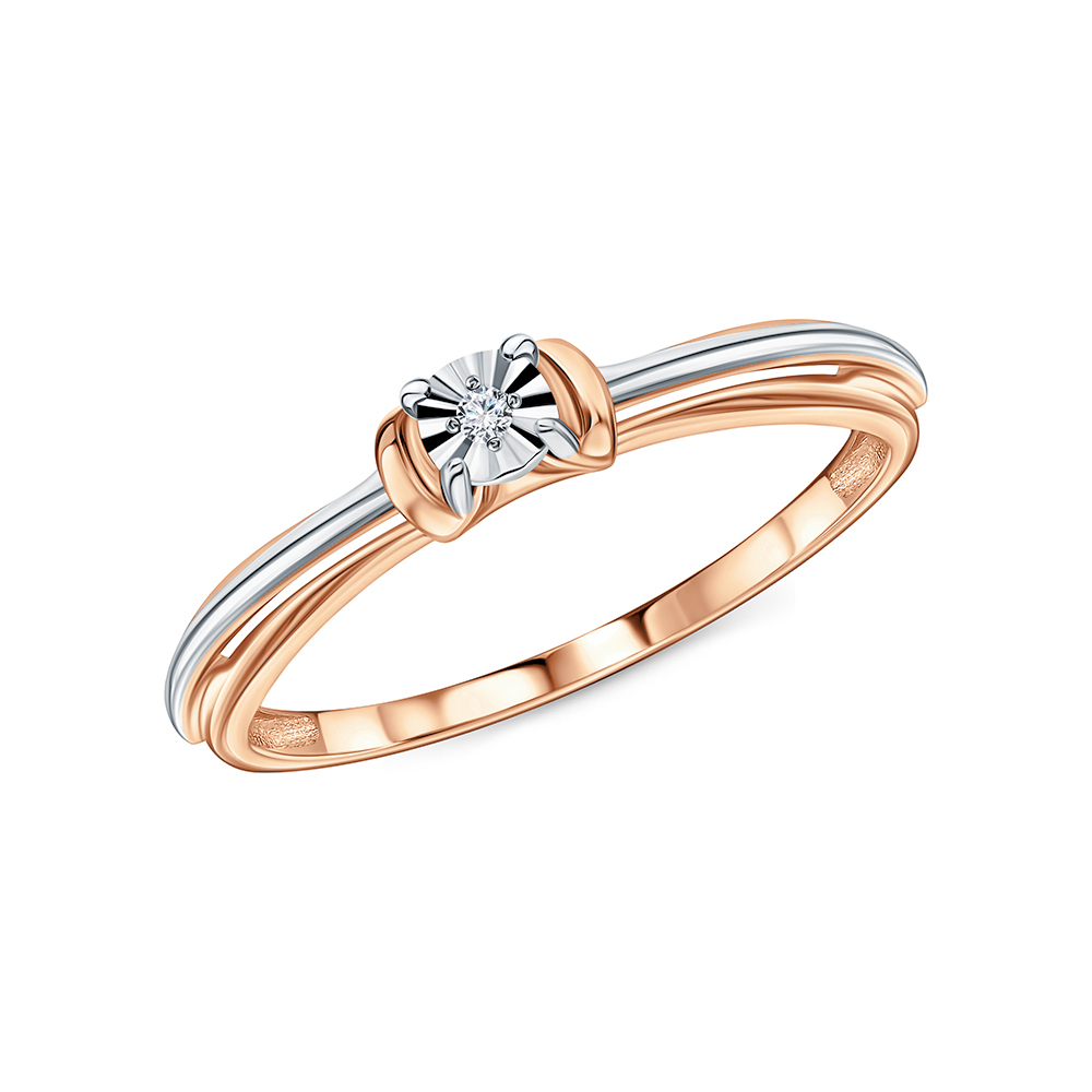 Кольцо с 1 бриллиантом природным, 0.008 карат, огранка круг 57 граней, цвет 3, чистота 6;