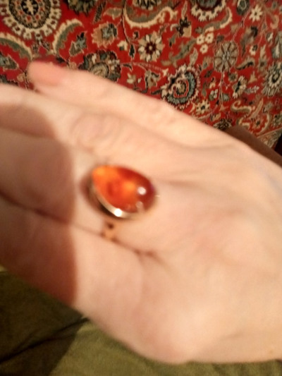 Серебряное кольцо с янтарем.Слегка помутнел янтарь