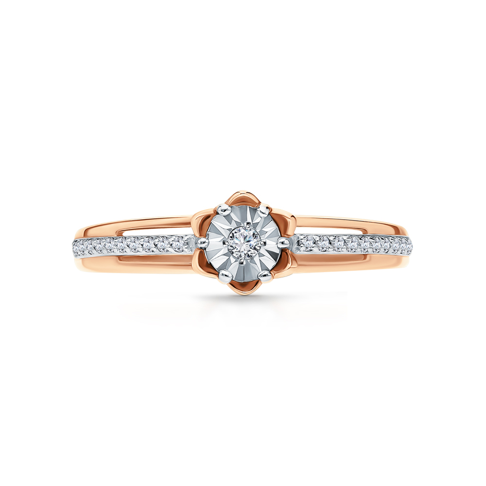 Кольцо с 1 бриллиантом природным, 0.02 карат, огранка круг 57 граней, цвет 4, чистота 6, тип огранки А;