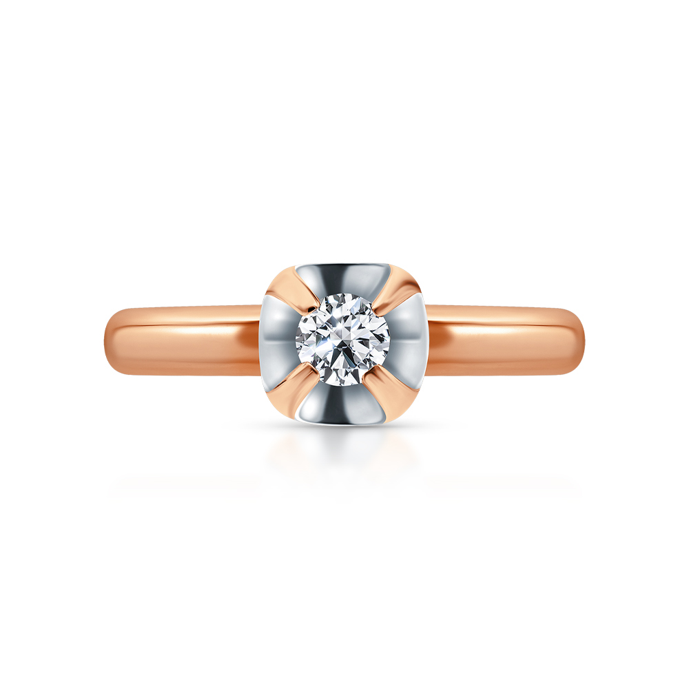 Кольцо «Бриллианты Якутии» с 1 бриллиантом, 0.109 карата. Это изысканное кольцо из розового золота 585 пробы привлекает внимание своей элегантностью и блеском. Характеристики камней: