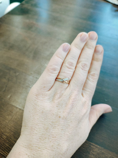 Очень аккуратное и нежное колечко, ношу не снимая. Так привыкла, что даже не ощущаю его на руке