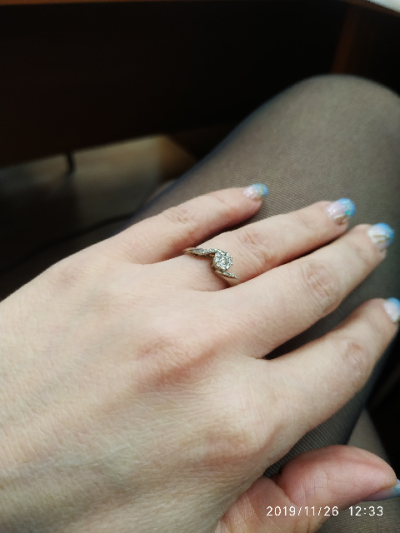 Пять лет ношу это кольцо. Милое, нежное. Красиво сверкают бриллианты. Люблю мое колечко!