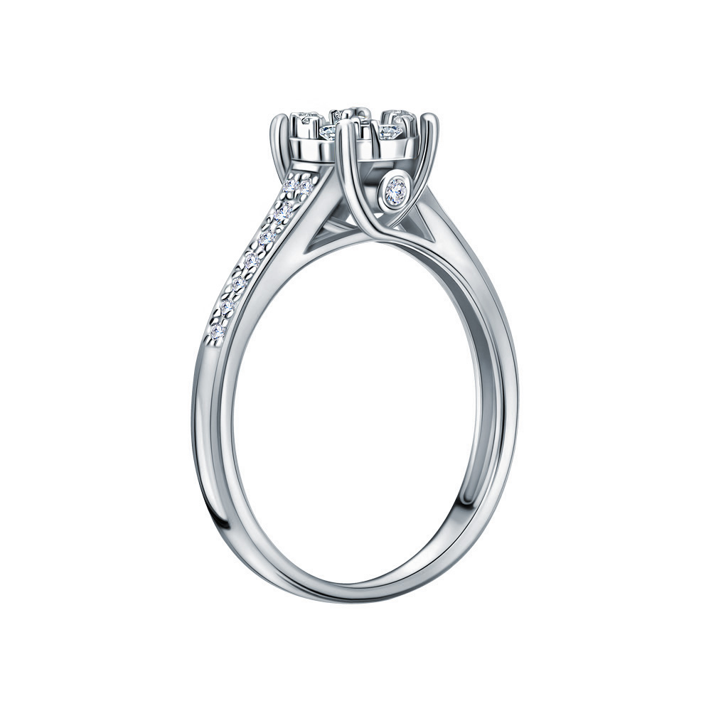 Кольцо «Бриллианты Якутии» с 6 бриллиантами, огранка круг 57 граней, 0.051 карат, цвет 3, чистота 6, тип огранки А, 1 бриллиантом, огранка круг 57 граней, 0.07 карат, цвет 3, чистота 6, тип огранки А, 6 бриллиантами, огранка круг 57 граней, 0.02 карат, цвет 3, чистота 6, тип огранки А, 12 бриллиантами, огранка круг 57 граней, 0.046 карат, цвет 3, чистота 6, тип огранки А, 6 бриллиантами, огранка круг 57 граней, 0.108 карат, цвет 3, чистота 6, тип огранки А; Белое золото 585 пробы