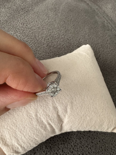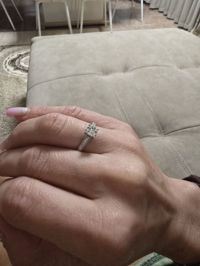 Это любовь с первого взгляда! Мое первое и самое любимое кольцо с бриллиантами. Безумно его люблю. Муж покупал в качестве подарка на день рождения. Само кольцо уже год в непрерывной носке. Все камушки на месте, блестят так, как будто только с витрины. Спасибо любимому мужу и магазину.