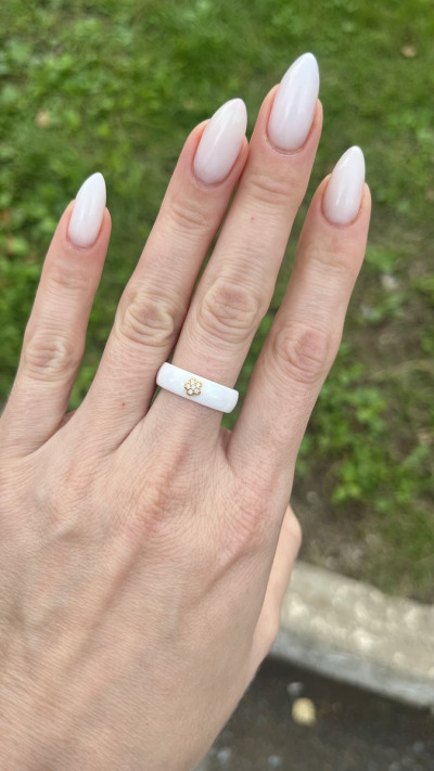 Кольцо, вставка: керамика белая;