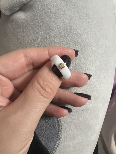 Керамическое кольцо с фианитами и керамикой