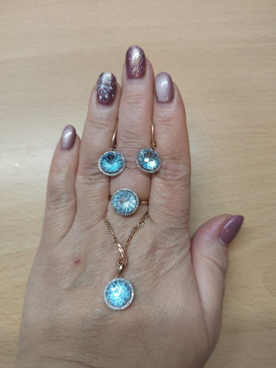 Шикарный комплект получился! Рекомендую! Камни красивой огранки и переливаются вместе с бриллиантами !