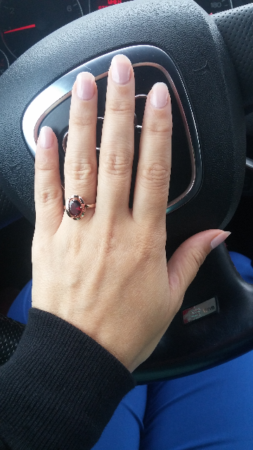 Камень достаточно крупный, кольцо немного маловато в объёме. Покупали в подарок, все понравилось.