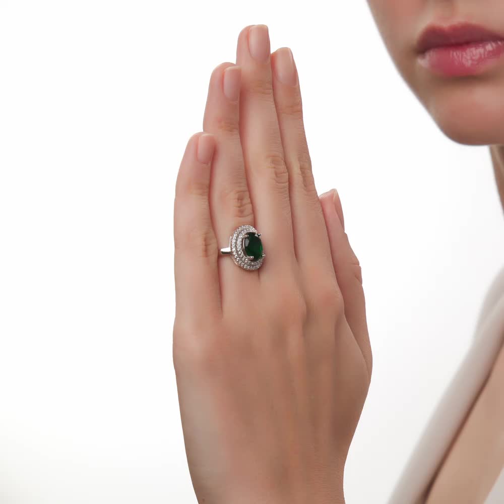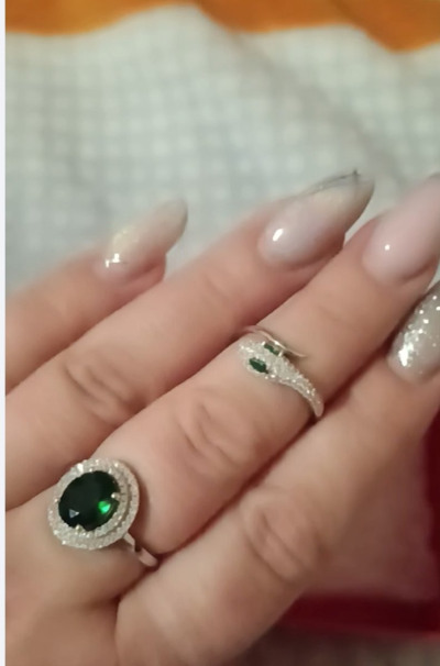 Очень красивое кольцо... Мелкие фианитики сверкают и переливаются, а зелёный просто сияет... Сидит кольцо на пальце прекрасно, не крутится... Взяла в комплект к браслету... Прекрасно смотрятся ..