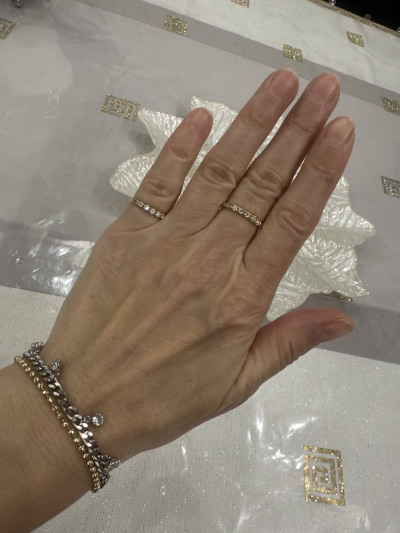 Отличное колечко за хорошую стоимость. Брильянты красиво переливаются и играют на солнечном свете. Мерила белое и розовое золото. В белом камушки выглядят более выигрышно.