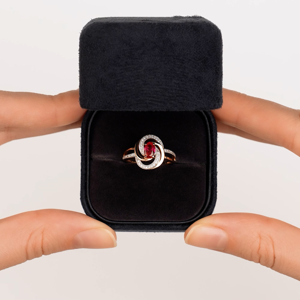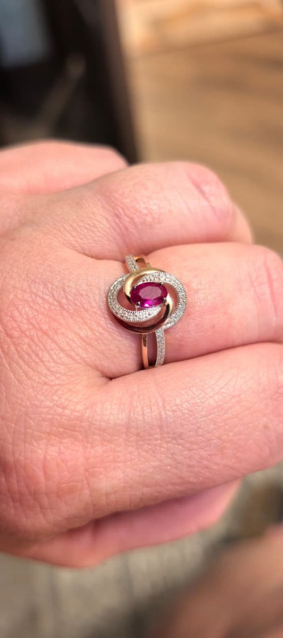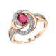 Золотое кольцо с бриллиантами природными и рубином выращенным