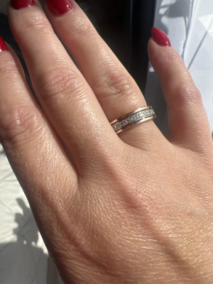 Долго выбирали обручальные кольца, и как только примерила данное изделие сразу поняла, что хочу только его! Оно просто великолепно, на солнце сверкает! Рекомендую к покупке!