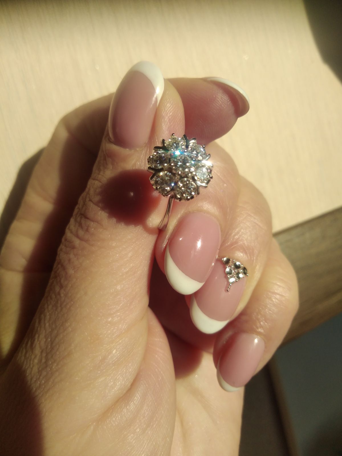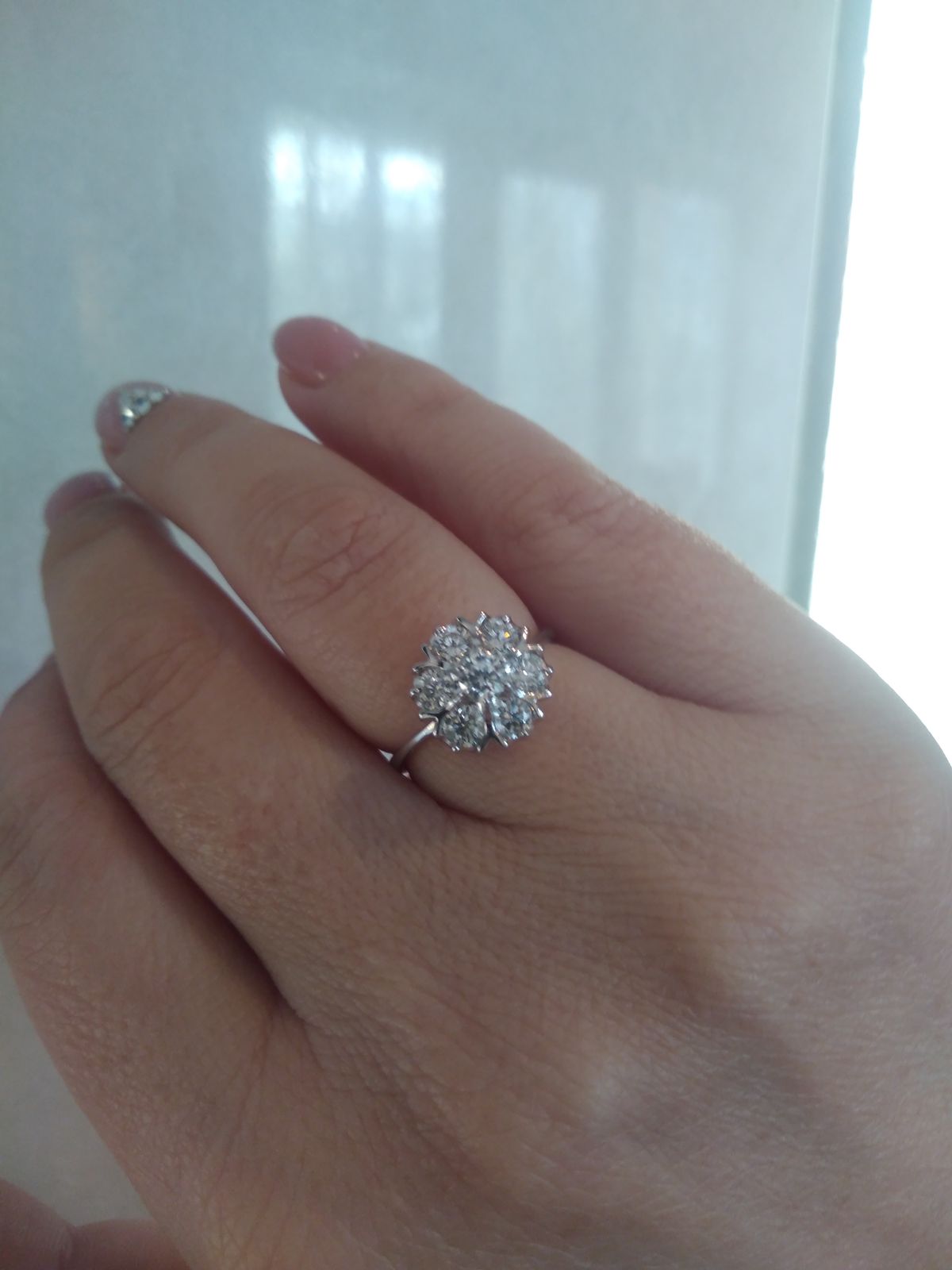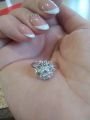 Колечко очень нежное и воздушное, лёгкое и удобное. Металла почти не видно, все внимание привлекают бриллианты - крупные, прозрачные и чистые, горящие и манящие. Характеристики - 57 - 3/6 А. Сногсшибательное украшение и море радости и позитива. Спасибо Санлайт!