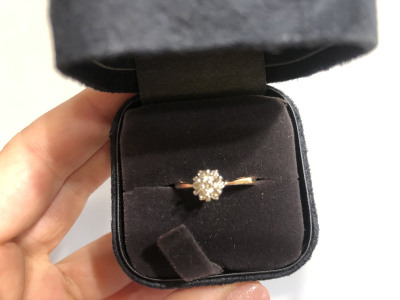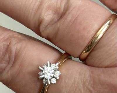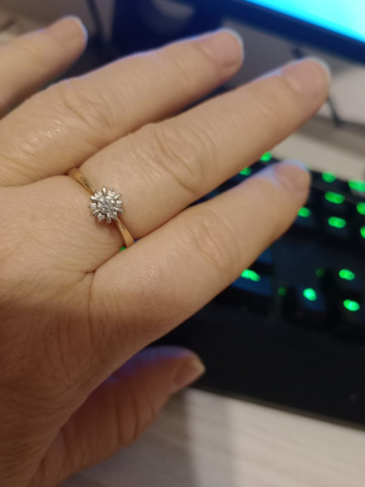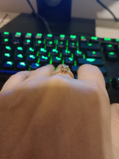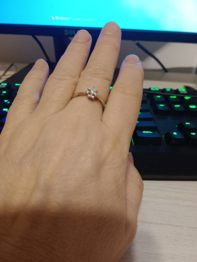 Кольцо красивое ,необычного дизайна,большой камень блестит хорошо,мелкие скромнее,но смотрится все равно кольцо интересно.