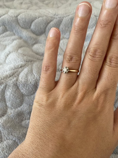 Кольцо с 1 бриллиантом природным, 0.15 карат, огранка круг 57 граней, цвет 3, чистота 6, тип огранки А;