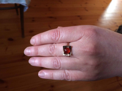 Покупала в подарок маме. Влюбилась в это кольцо сразу, а тем более, что мамулечка любит янтарь, поэтому оценила не только оригинальное исполнение, но и камень, известный своими целебными свойствами