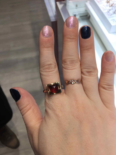 Очень красивое кольцо! Получила его подарок от любимого мужа! Я давно мечтала о кольце с камнем и это всё, что я хотела, нежно смотрится и дорого!