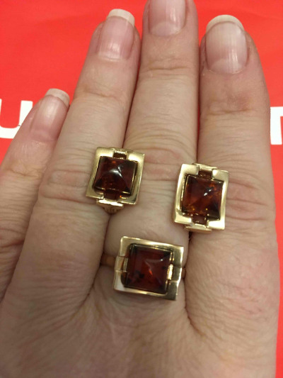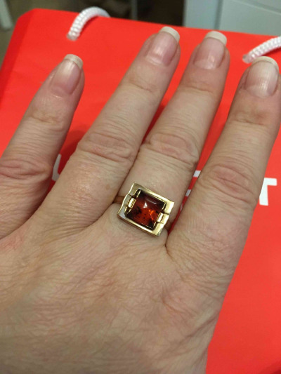 Очень долго искала не кричащий, строгий набор с темным янтарем. Мне повезло, нашла в вашем магазине. довольно таки массивные( не легкие) золотые изделия. янтарь просто чудесный, он темный, на свету светлеет и в нем начинаю светится прожилки. Мне как офисному работнику, данное кольцо и раннее купленные сережки ,подходят просто идеально. хочу порекомендовать данное кольцо и сережки.