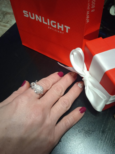 Нереально красивое кольцо!!! Пришлось немного подождать, пока его доставят из питера, но этот заяц того стоит. А как он играет фианитами на свету.... Ммм... Моя любовь 💞💞💞 а открыточка и мини-конверт- это так мило.... Спасибо, санлайт.