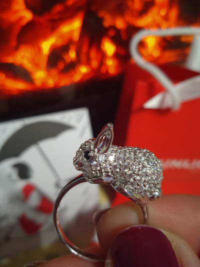 Очень милое кольцо-зайка. Красиво переливается при любом свете, собираю комплименты)))