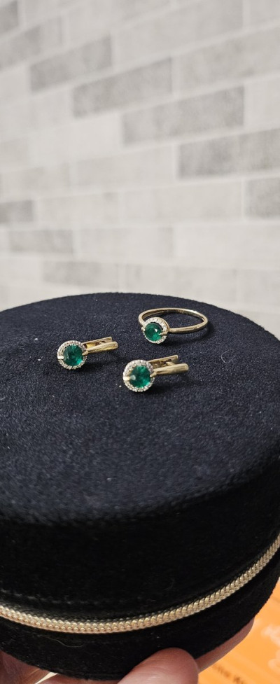 Очень красивое кольцо с изумрудом. Брала в комплекте. Очень аккуратно смотрятся.
