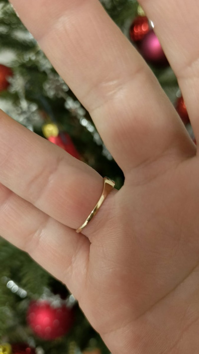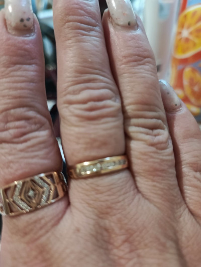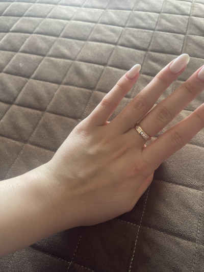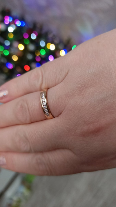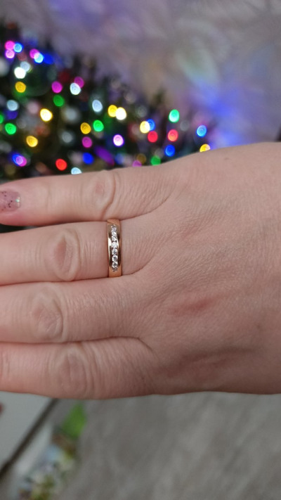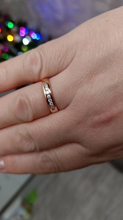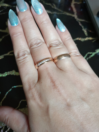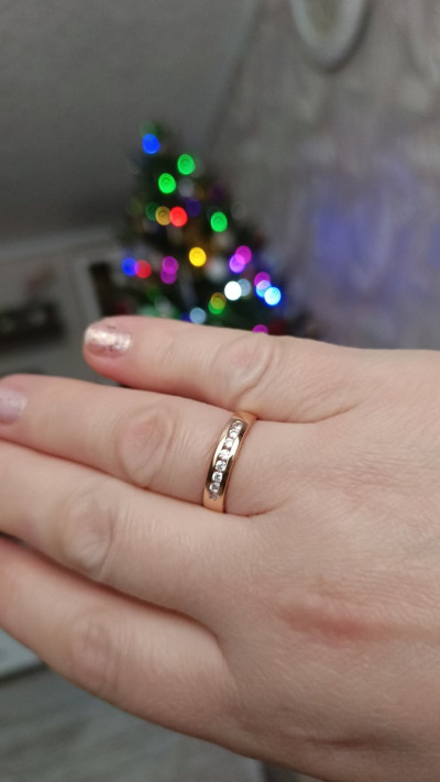 Искала временный вариант на смену своего широкого обручального (на данный момент сдавливает палец из за набора веса) и нашла! Под пальцем тонкая часть кольца, так называемая "комфортная посадка" - идеальнейший вариант для комфорта ежедневной носки, не пережимает палец, очень удобно. На пальце очень удобное, не чувствуется, а выглядит очень красиво, одновременно благородное и нежное.