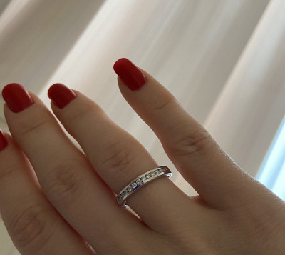 Долго решалась на покупку этого кольца. Всем спасибо за отзывы! Нужна была дорожка для носки с др.кольцами ,дабы дополняла и фиксировала кольцо с сапфиром. Одна в качестве обручального у меня есть, с 5 бриллиантами по 0.06кр от санлайт. Но нужно было что-то более обтекаемой формы и с большим кол-вом камней 😄 эта дорожка подошла идеально) не вычурная,но заметная, можно носить самостоятельно. Увесистая, почти 2.5гр, общий вес 13 камней 0.3, 4/6а. Итого, каждый камень почти 0.02. Не согласна с тем,что кольцо тонкое.отнюдь.есть такие же «дорожки счастья» этой серии,но с меньшим весом камней. Вот они да, тонковаты. Смотря для каких целей брать. Люблю и доверяю sunlight. Имею много изделий и всегда помню,что за ювелирными изделиями нужен уход у ювелира (особенно, что касается белого золота). Тогда они долго будут радовать вас своей красотой 🤗